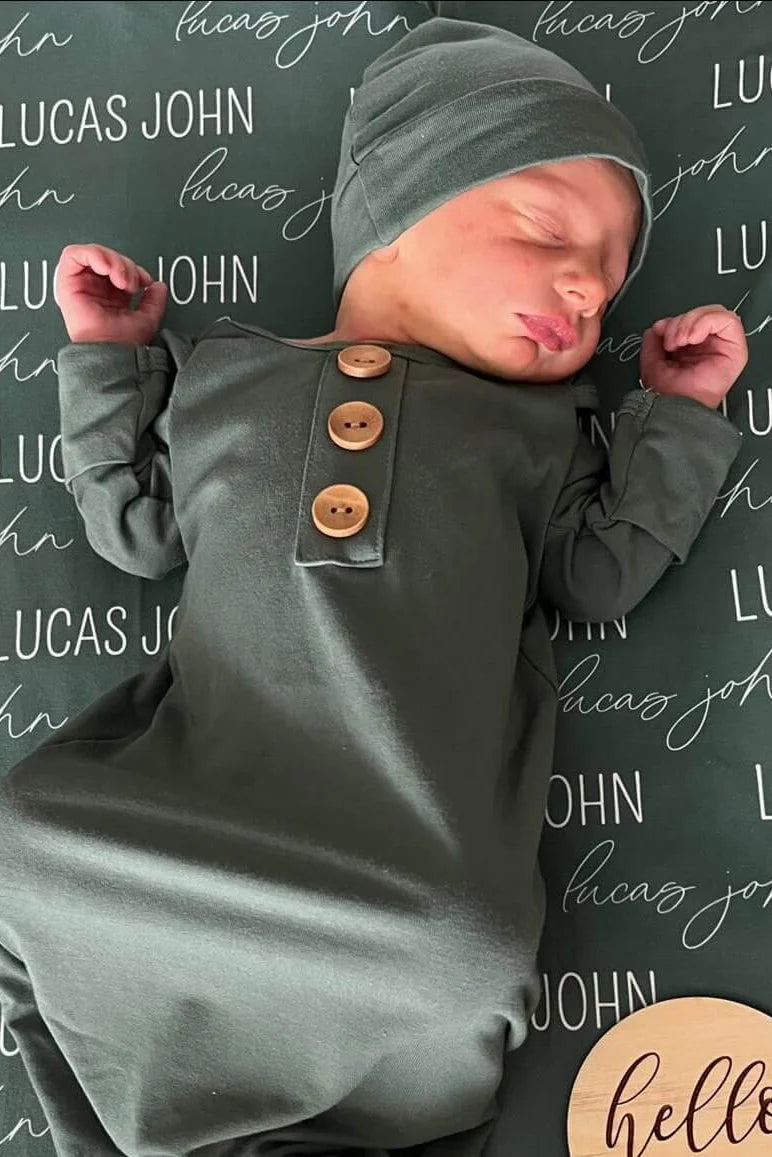 Wrapped in love from head to toe! Our Emerald Bamboo Knot Gown is the coziest little cuddle for your newborn, featuring a timeless emerald green that is fit for any baby. Made from ultra-soft fabric that’s gentle on delicate newborn skin, this gown is designed to keep baby comfy all day and night. The self-tying knot makes diaper changes a breeze—just untie, change, and retie without any snaps or zippers to fuss with. With fold-over mittens to protect your baby from scratches and a stretchy neckline for easy dressing, this gown will quickly become a mom-favorite. Whether it’s for naptime, snuggles, or those first precious photos, this is the outfit you’ll reach for again and again.